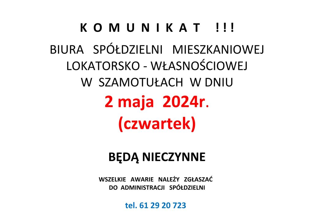 Jeżeli ktoś jeszcze chciałby pomóc przy organizacji tego przedsięwzięcia prosimy o kontakt ze Spółdzielnią.