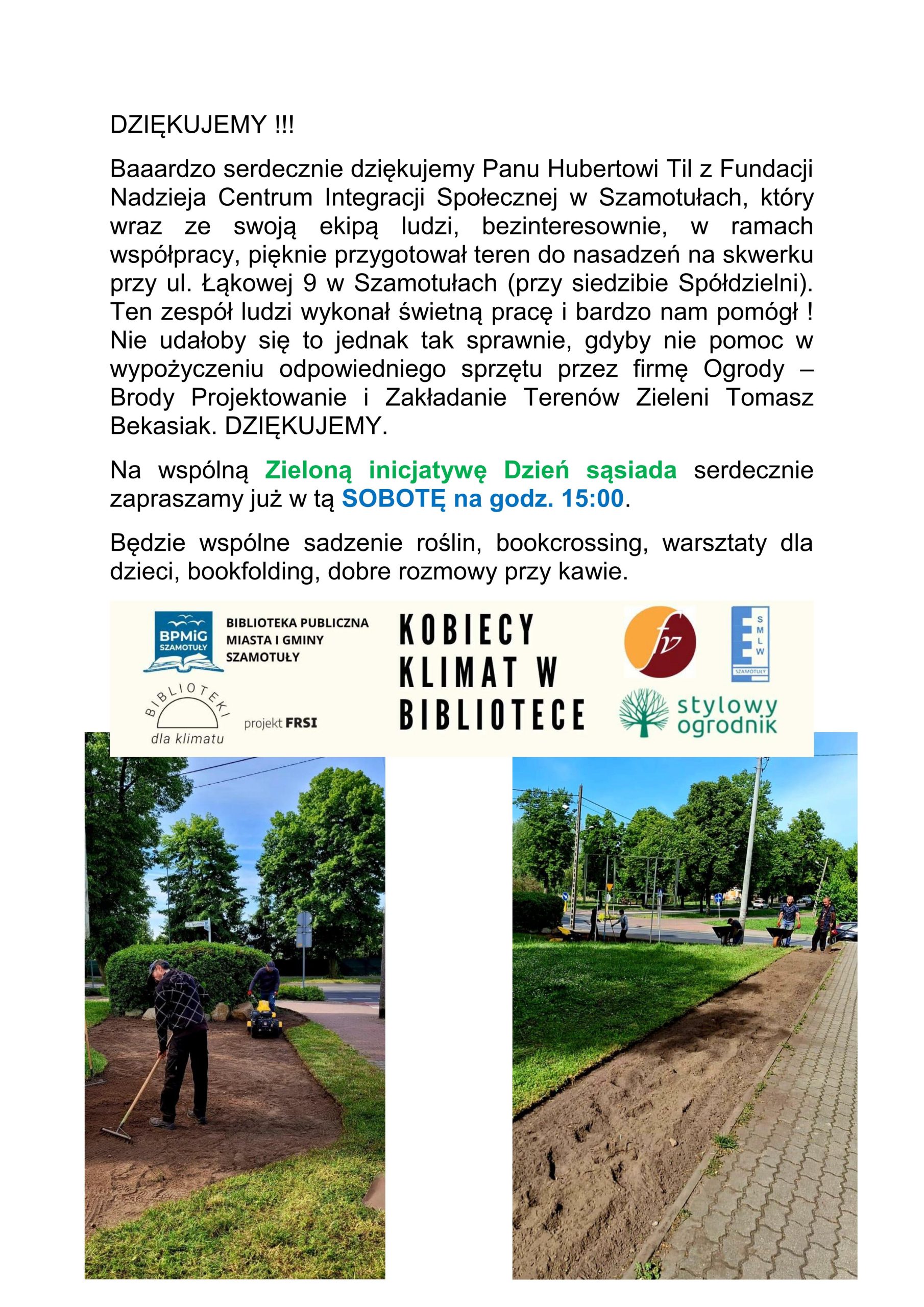Do zobaczenia 3 czerwca 2024r. o godzinie 16:00 na terenach zielonych przy placu zabaw na ul. Tenisowej w Szamotułach.
